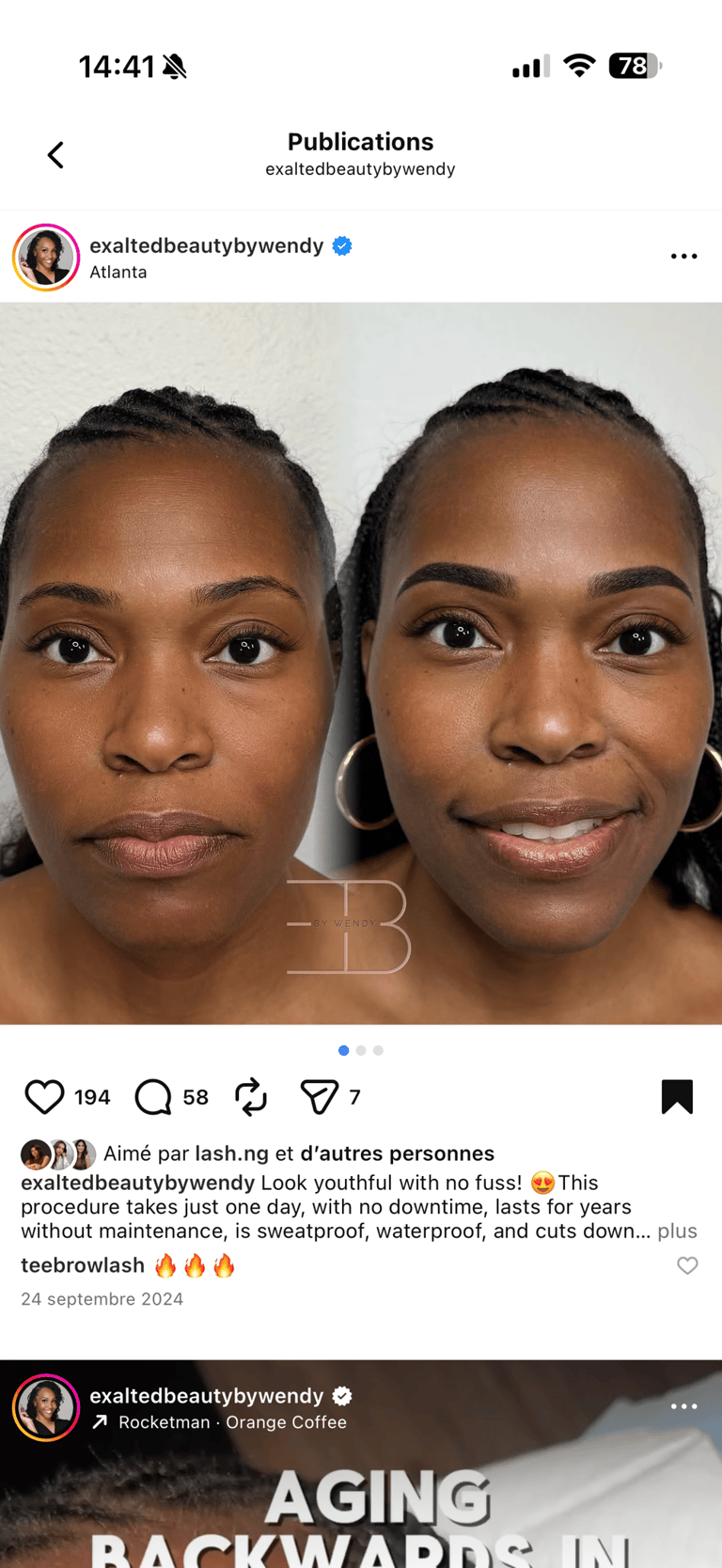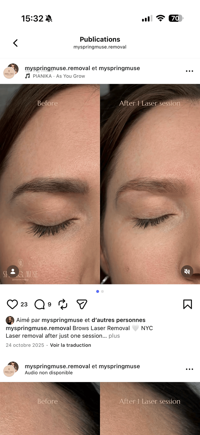 Si vos sourcils ont été maquillés par une autre personne, veuillez prendre rendez-vous pour un rattrapage.