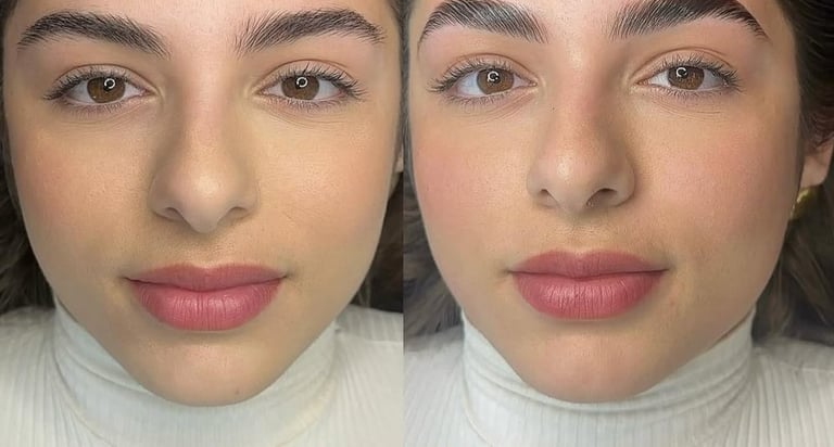 Technique de maquillage semi-permanent qui apporte densité et définition aux sourcils grâce à un effet poudré subtil.